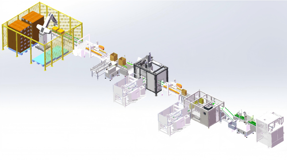 深拓智能-智能裝箱碼垛自動化系統可幫助制造企業實現自動開箱、自動理料、自動裝箱、自動噴碼/貼標、自動檢測/剔廢、自動封箱捆扎、自動碼垛等后道包裝的全自動化、數字化、智能化、柔性化生產管理;省人、降本、提質、增效提高制造企業綜合競爭力。
